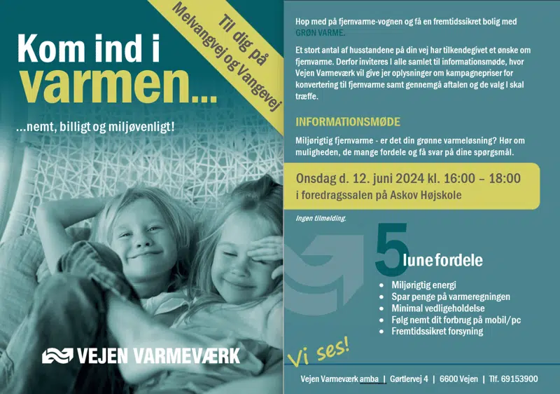 Vejen Varmeværk har derfor afholdt informationsmøde for husstandene på Melvangvej. Interesserede husstande kan booke et besøg af Vejen Varmeværk for at gennemgå hustandens individuelle løsning. Vi ønsker nemlig kun at levere fjernvarme til dig, hvis vi selv er overbeviste om, at det er den bedste løsning for begge parter.